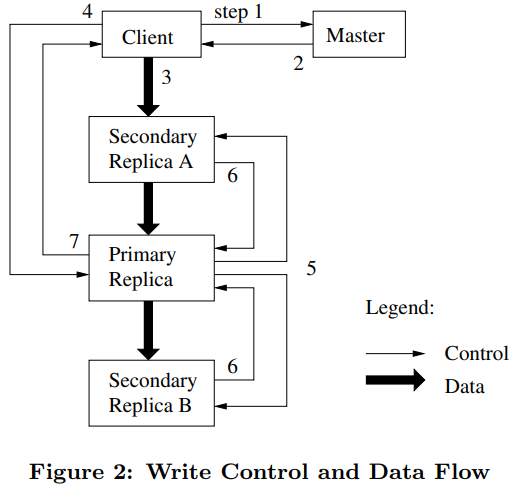 我们在设计这个系统时,一个重要的原则是最小化所有操作和 Master 节点的交互。带着这样的设计理念,我们现在描述一下客户机、Master 服务器和 Chunk 服务器如何进行交互,以实现数据修改操作、原子的记录追加操作以及快照功能。